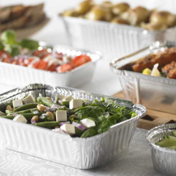 Khay giấy bạc được làm bằng giấy bạc chắc chắn có kèm theo nắp nhựa tiện lợi giúp bảo quản tốt thực phẩm cũng như giữ nóng và an toàn vệ sinh trong quá trình vận chuyển.