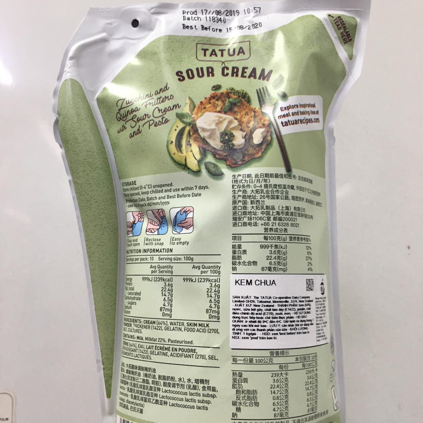 Cũng như các loại kem whipping khác, Sour Cream Tatua 1kg là kem nhưng ít béo hơn whipping và có vị chua. Thời gian gần đây sour cream ngày càng được sử dụng phổ biến ở Việt Nam để sử dụng trong nấu ăn và làm bánh.